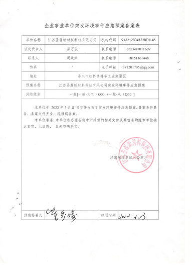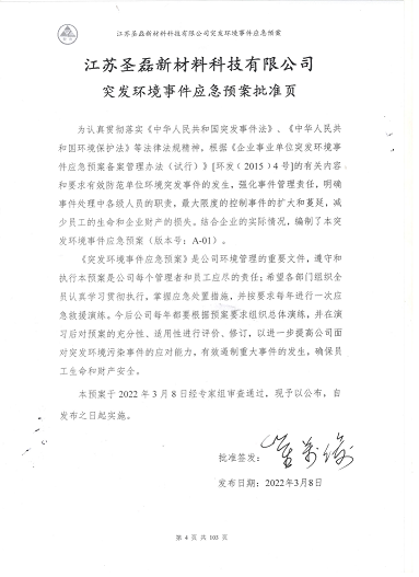 江苏圣磊新材料科技有限公司突发环境事件应急预案